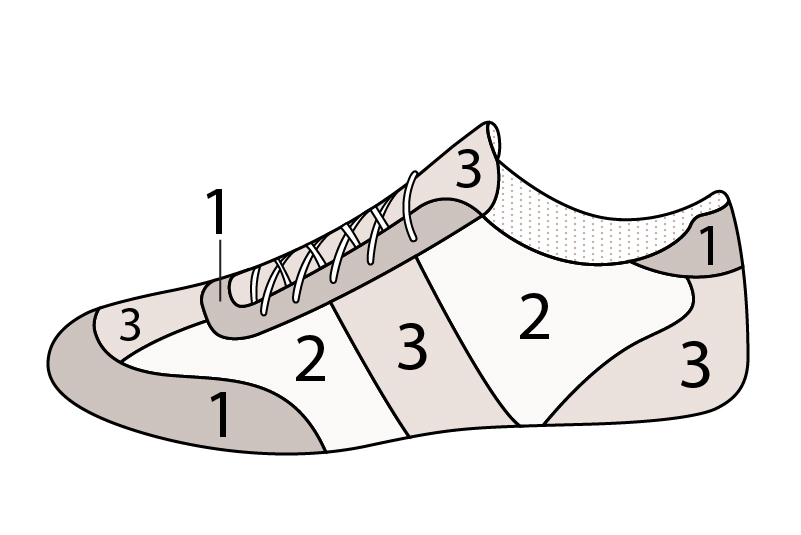 Semelles compensées d'une hauteur de 1.5 centimètre au talon