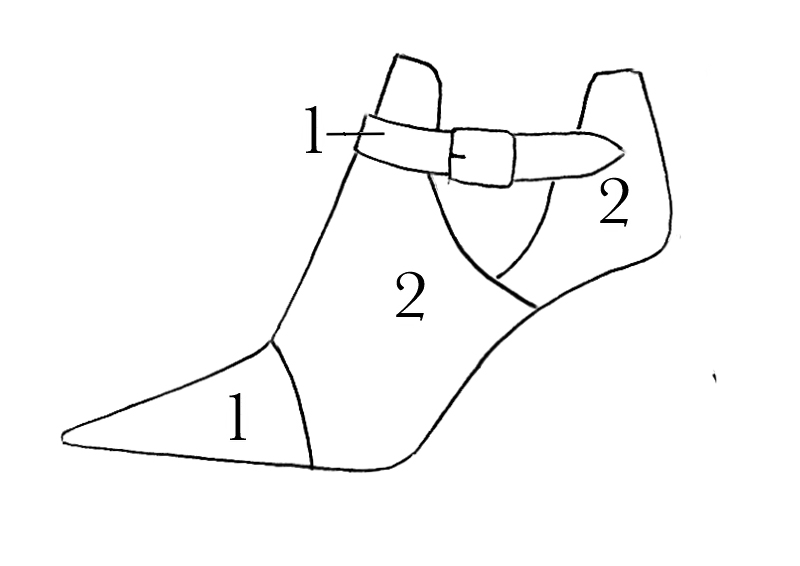 Bottines femme boucles sur les côtés noir satiné et marron caramel. Bout pointu. Talon bobine de 9.5 cm - Vue du dessus