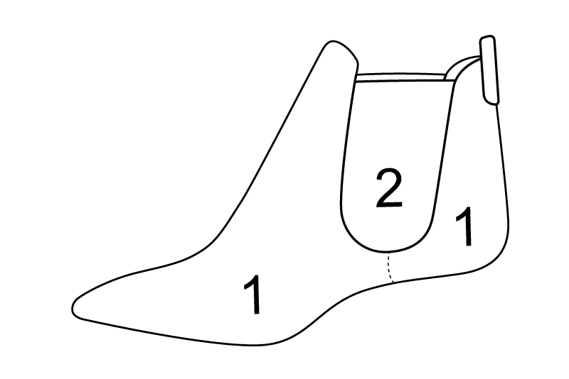 Bottines femme avec des élastiques rouge bordeaux et rouge carmin. Bout effilé. Talon conique de 5.5 cm - Vue du dessus