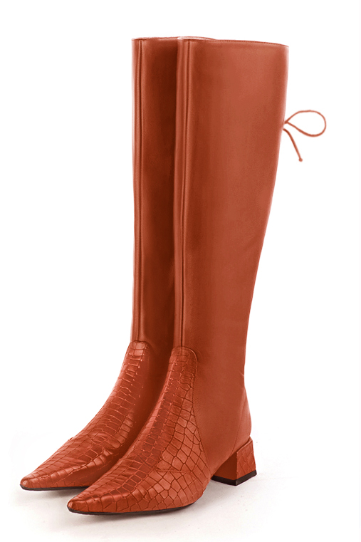 Ensemble bottes sur mesures et sac assortis coloris orange corail.