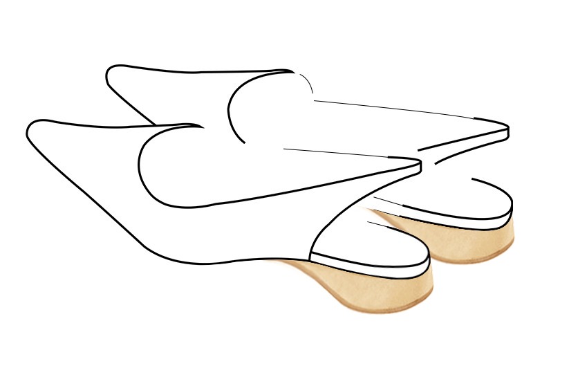 Talon plat compensé dans la gorge, en "patte d'éléphant"